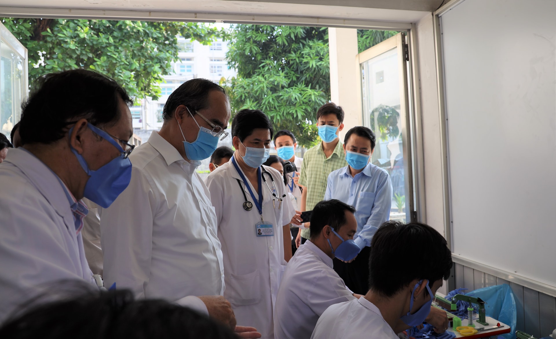 Cũng tại buổi làm việc, Bí thư Thành ủy Nguyễn Thiện Nhân đã tham quan các mô hình, sáng kiến phòng chống dịch của BV, như máy dập khẩu trang sát khuẩn, máy sát khuẩn rửa tay nhanh…