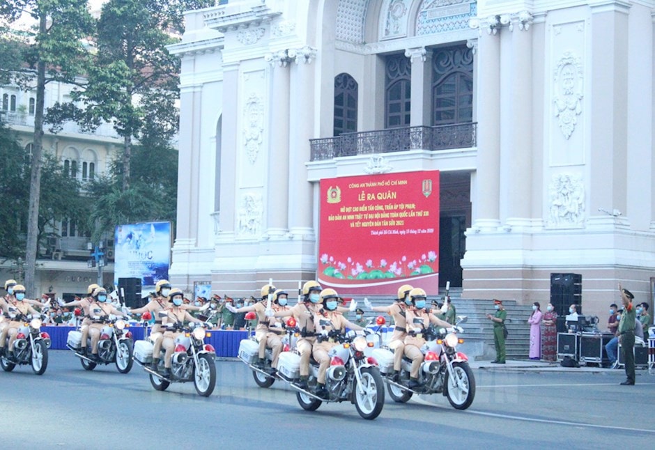 Sáng 15/12, Công an TPHCM đã tổ chức Lễ ra quân cao điểm tấn công, trấn áp tội phạm, bảo đảm an ninh trật tự Đại hội Đảng toàn quốc lần XIII và Tết Nguyên đán Tân Sửu 2021. Phó Bí thư Thành ủy TPHCM Nguyễn Hồ Hải; Phó Chủ tịch UBND TPHCM Ngô Minh Châu; Thiếu tướng Lê Hồng Nam, Giám đốc Công an TPHCM; Trưởng Ban Tuyên giáo Thành ủy TPHCM Phan Nguyễn Như Khuê; Phó Chủ tịch HĐND TPHCM Phạm Đức Hải; và lãnh đạo các ban ngành, đoàn thể TP đã đến dự.