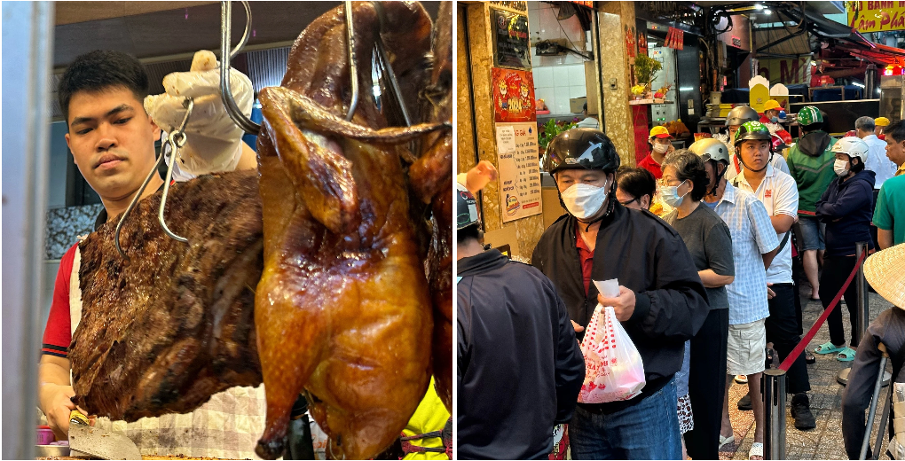 Theo quan sát, đa phần mọi người tới chỉ để tìm mua heo quay, vịt quay. Vì khách quá đông, phải bốc số thứ tự, xếp hàng chờ tới lượt