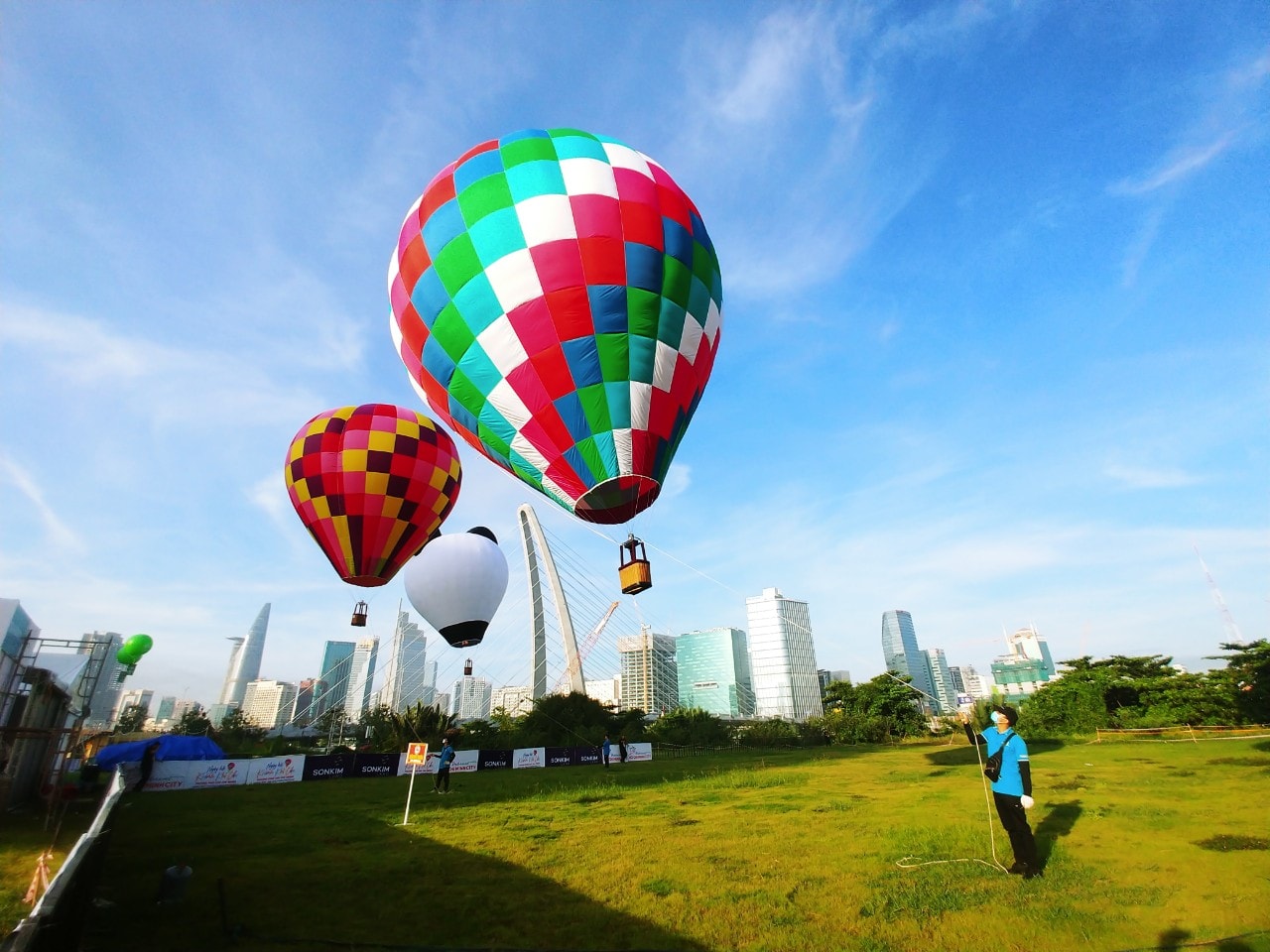 Ngay đầu giờ sáng nay, BTC lễ hội đã sẵn sàng. Tại công viên cầu Thủ Thiêm 2 hiện có rất nhiều các khinh khí cầu đủ kích cỡ, đưa du khách ngắm nhìn TP.HCM ở độ cao 70m, mỗi lượt bay 5-15 phút, số lượng tối đa là 4 khách, có phi công đi cùng.
