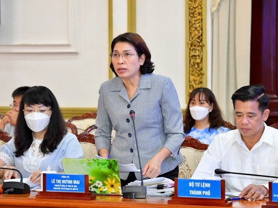 Giám đốc Sở KH-ĐT TPHCM Lê Thị Huỳnh Mai phát biểu tại phiên họp. Ảnh: VIỆT DŨNG