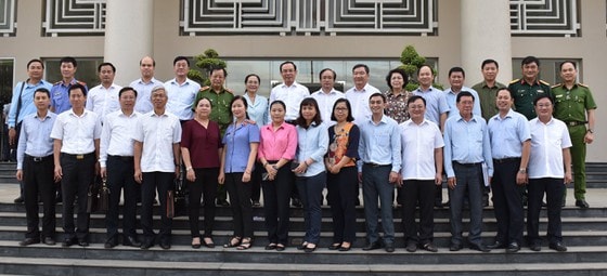 Đoàn công tác cùng các cán bộ chủ chốt quận 2. Ảnh: KIỀU PHONG