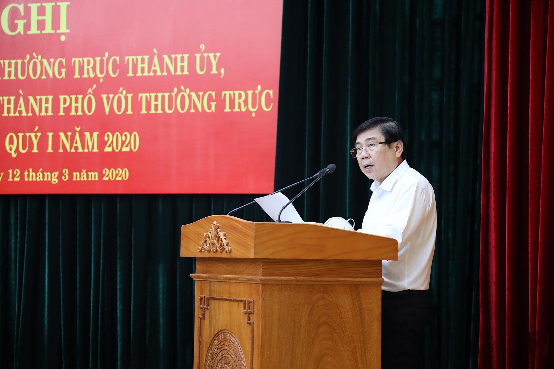 Phát biểu tại Hội nghị, Chủ tịch UBND TP Nguyễn Thành Phong cho rằng, WHO đã chính thức công bố Covid-19 là đại dịch toàn cầu, do đó TP đã lên kế hoạch cả hệ thống chính trị của TP cùng phòng chống dịch và coi tính mạng, sức khỏe của người dân là quan trọng hàng đầu. Trong đó, tăng cường vai trò của người đứng đầu và phải coi “chống dịch như chống giặc”. TP cũng kiên quyết xử lý nghiêm các trường hợp trốn không chịu cách ly theo quy định và hướng dẫn của Bộ Y tế. Cũng theo chỉ đạo của người đứng đầu chính quyền TP, thành phố sẵn sàng phương châm 5 tại chỗ, bình tĩnh trong xử lý các tình huống phức tạp có thể xảy ra. Sở Y tế TP phải cam kết không để xảy ra lây nhiễm tại các khu cách ly tập trung và không để nhân viên nào làm quá 12 tiếng một ngày, tránh quá tải cho cán bộ, nhân viên y tế.