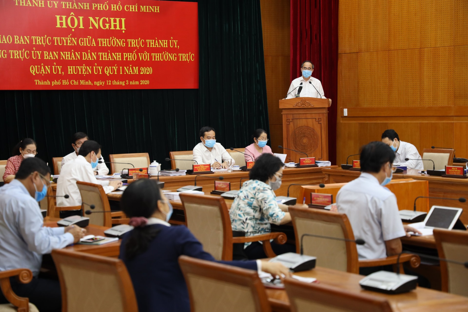 (HMC) - Chiều 12/3, Ủy viên Bộ Chính trị, Bí thư Thành ủy Thành phố Nguyễn Thiện Nhân đã chủ trì Hội nghị giao ban trực tuyến giữa Thường trực Thành ủy, Thường trực UBND Thành phố với Thường trực các Quận ủy, Huyện ủy trên địa bàn quý I năm 2020. Hội nghị nhằm đánh giá kết quả lãnh đạo, chỉ đạo của Ban Thường vụ Thành ủy, Thường trực Thành ủy về một số nhiệm vụ trọng tâm đến tháng 02/2020, triển khai những nhiệm vụ trọng tâm đến thời điểm Đại hội Đại biểu Đảng bộ Thành phố lần thứ XI (nhiệm kỳ 2020-2025).