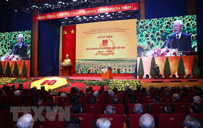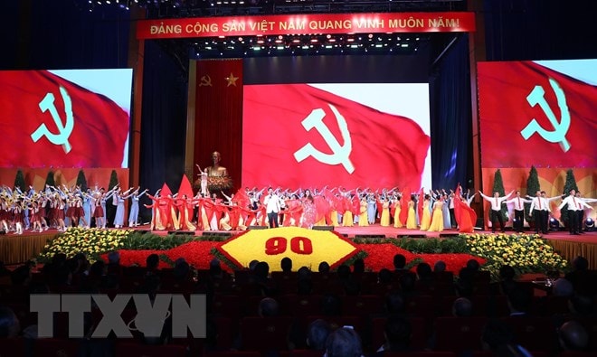 Quang cảnh lễ kỷ niệm 90 năm Ngày thành lập Đảng Cộng sản Việt Nam. (Ảnh: Phương Hoa/TTXVN)
