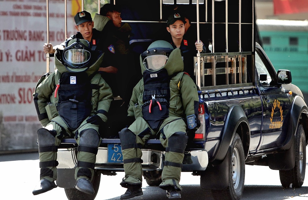 Lực lượng cảnh sát cơ động và chó nghiệp vụ được điều động tham gia tình huống rà tìm bom mìn, hóa chất và bắt giữ các đối tượng khủng bố bắt giữ con tin/SGGP