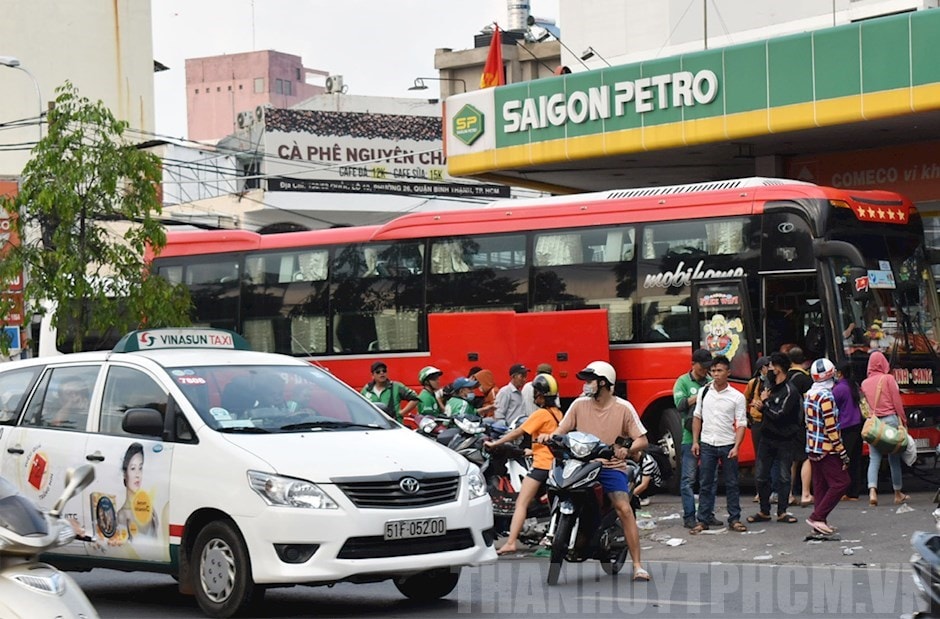 Xe đón trả khách tại cây xăng trước cổng Bến xe miền Đông, quận Bình Thạnh/Thanhuytphcm.vn