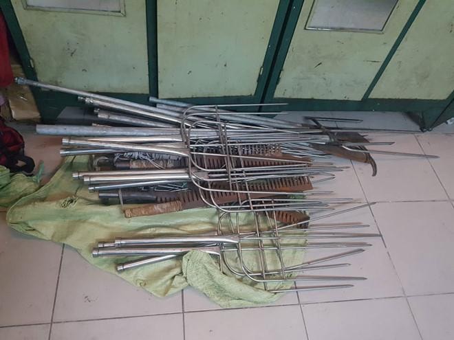 Số hung khí công an thu giữ tại căn nhà 1458 Hoài Thanh (P.14, Q.8)/ Nguồn: báo Thanh Niên