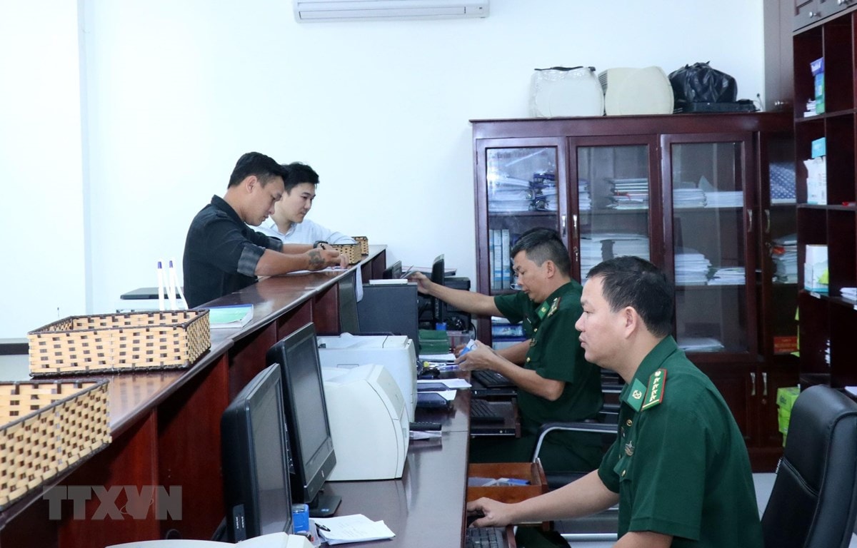 Doanh nghiệp, đại lý tới nhận kết quả giải quyết hồ sơ, sau khi được duyệt qua Biên phòng điện tử. (Ảnh: Xuân Khu/TTXVN)