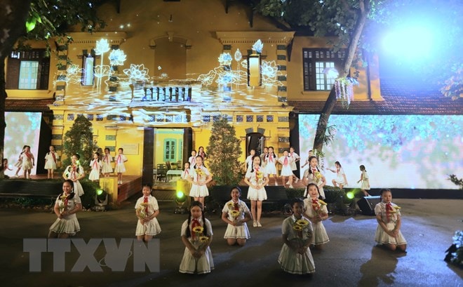 • Một tiết mục nghệ thuật tại điểm cầu Hà Nội. (Ảnh Doãn Tấn/TTXVN)