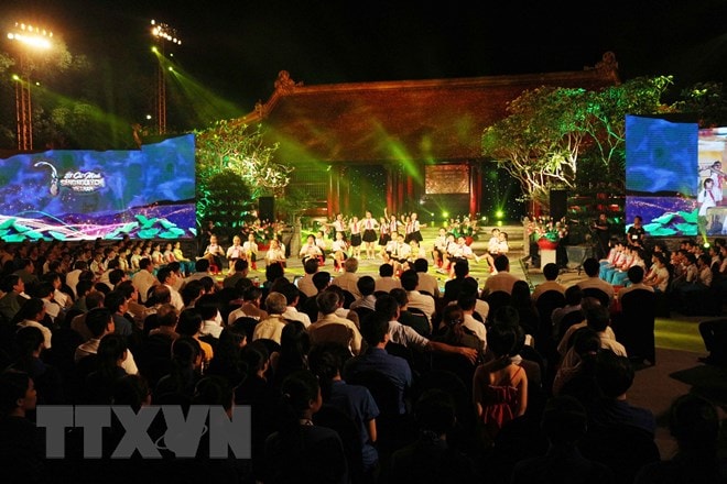 • Một tiết mục nghệ thuật tại chương trình tại điểm Nghệ An. (Ảnh: Nguyễn Oanh/TTXVN)