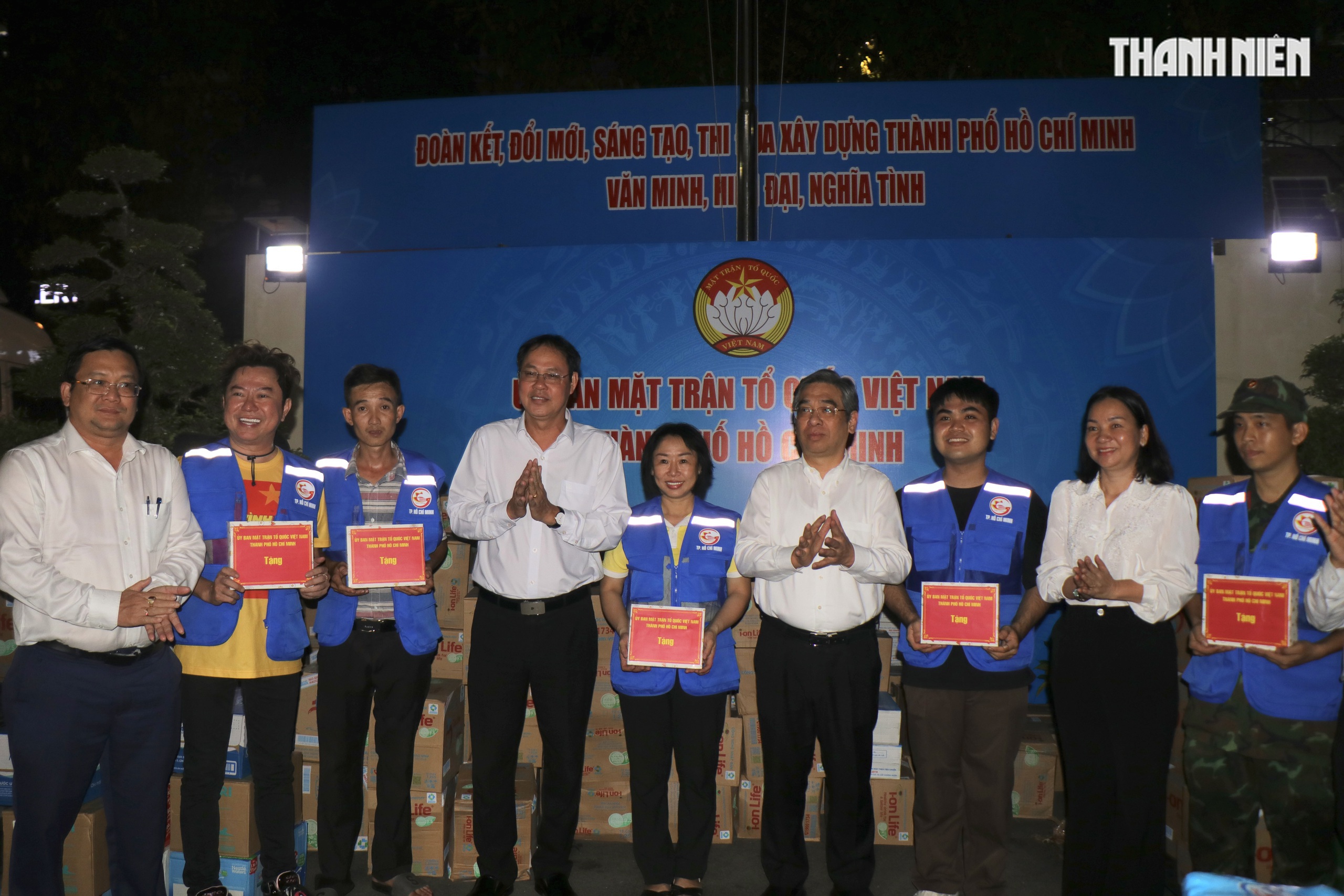 Báo Thanh Niên cho hay, tối qua 24/11, ông Nguyễn Phước Lộc, Chủ tịch Ủy ban MTTQ Việt Nam TP. HCM đã đến thăm, động viên và tặng quà cho lực lượng tiếp nhận hàng cứu trợ và các tình nguyện viên đang làm việc không ngừng nghỉ tại trụ sở Ủy ban MTTQ Việt Nam TP. HCM.