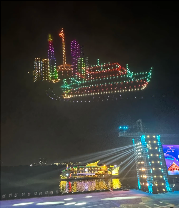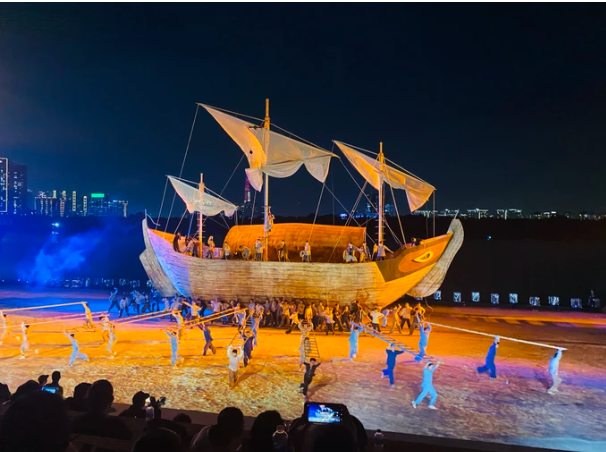 Lần đầu tiên, một sân khấu chuyển động liên tục diễn ra trên bến cảng với những đạo cụ không chỉ lớn về kích thước như những con tàu như tàu thật, những container như thật, rồi các loại máy móc mô phỏng máy đóng tàu… đã phải huy động số lượng nhân viên kỹ thuật hàng trăm người, khớp nối kịch bản chính xác đến từng chi tiết nhỏ.