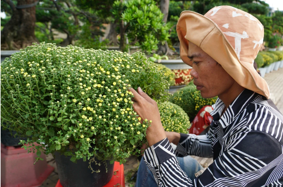 Bà Xinh, chủ vườn cây cảnh Lâm Đại Phát, cho biết: “Tầm thời điểm này năm ngoái các công ty, doanh nghiệp đã ghé vườn mua rất nhiều hoa về trang trí Tết, tuy nhiên năm nay không khí không mấy nhộn nhịp”.