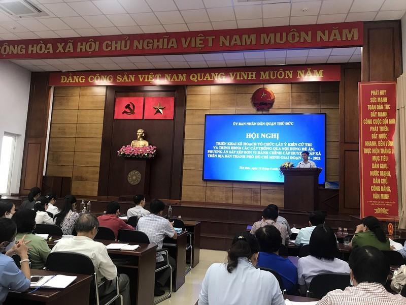 Tại hội nghị, Phòng Nội vụ quận Thủ Đức đã thông qua kế hoạch tổ chức lấy ý kiến cử tri để thông qua phương án sắp xếp đơn vị hành chính cấp huyện, cấp xã ở khu vực Thủ Đức, nhất là khi sắp tới Thành phố sẽ thực hiện đề án thành lập TP Thủ Đức.