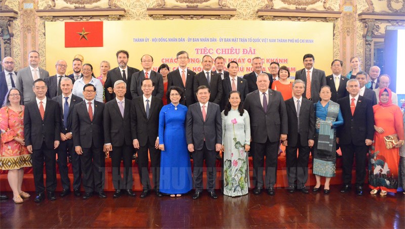 (Thanhuytphcm.vn) – Nhân kỷ niệm 74 năm Ngày Quốc khánh nước Cộng hòa xã hội chủ nghĩa Việt Nam (2/9/1945 - 2/9/2019), tối 29/8, Thành ủy - HĐND - UBND - Ủy ban MTTQ Việt Nam TPHCM tổ chức chiêu đãi chào mừng Quốc khánh. Đến dự có Ủy viên Trung ương Đảng, Chủ tịch UBND TP Nguyễn Thành Phong; Chủ tịch HĐND TP Nguyễn Thị Lệ; Chủ tịch Ủy ban MTTQ Việt Nam TP Tô Thị Bích Châu; Tổng lãnh sự Liên bang Nga tại TPHCM Alexay Popov và các Tổng Lãnh sự, đại diện các cơ quan lãnh sự, cơ quan kinh tế - thương mại - văn hóa, các tổ chức quốc tế, hiệp hội doanh nghiệp nước ngoài và các tổ chức phi Chính phủ tại TPHCM.