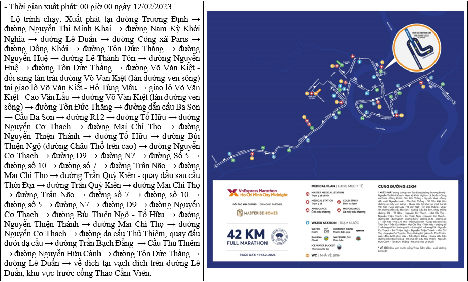 Hạn chế các loại xe lưu thông trên các cự ly thuộc lộ trình Giải VnExpress Marathon Ho Chi Minh City Midnight 2023. Các phương tiện lưu thông trên phần đường còn lại.