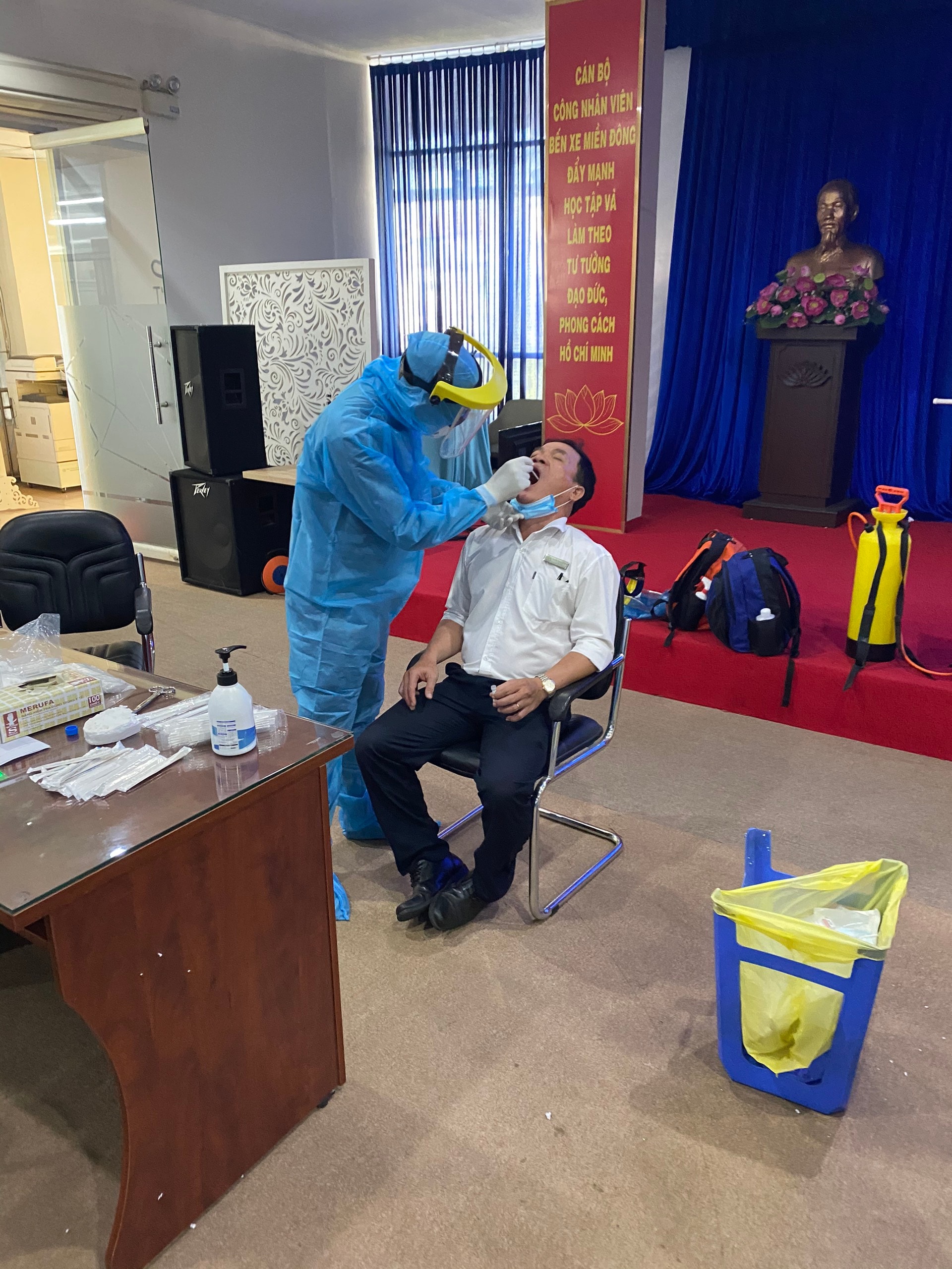 Trong buổi sáng, Trung tâm Kiểm soát Bệnh tật Thành phố (HCDC) phối hợp cùng Trung tâm Y tế quận Bình Thạnh đã lấy mẫu cho 71 trường hợp là nhân viên văn phòng, người lao động thuộc Công ty trách nhiệm hữu hạn một thành viên Bến xe miền Đông và những người chạy xe Grab, tài xế phương tiện giao thông công cộng trong khu vực này.