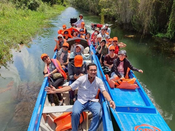 Du khách TPHCM tham gia tour du lịch kết nối TPHCM với các tỉnh ĐBSCL. Ảnh: MẪN MINH (TST Tourist)