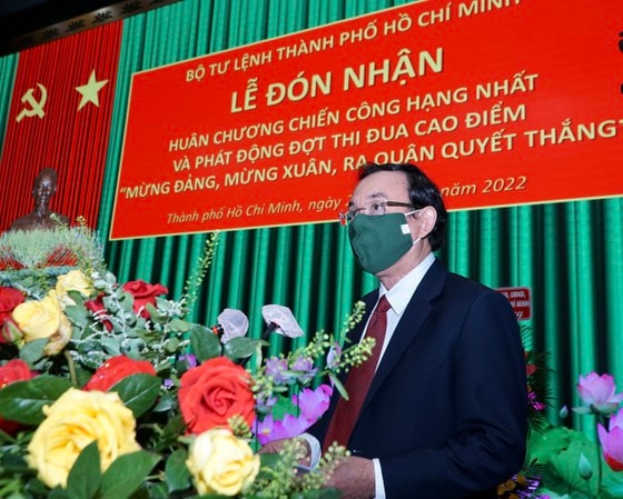 Bí thư Thành ủy TPHCM nhận xét, những thành tích, kết quả đạt được trong công tác phòng, chống dịch Covid-19 của lực lượng vũ trang thành phố đã góp phần tô thắm thêm truyền thống “Trung thành vô hạn, bám trụ kiên cường, đoàn kết kỷ cương, năng động sáng tạo, quyết chiến quyết thắng”.